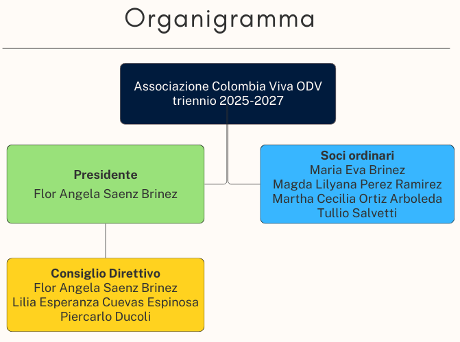 Ottobre 2003: il 29 ottobre 2003, nella sede di Breno (BS), viene costituita l'Associazione Colombia Viva Onlus grazie all'iniziativa di otto signore colombiane residenti nelle province di Brescia e Bergamo. La registrazione dell’atto costitutivo e dello statuto sono stati eseguiti in data 5 novembre 2003 presso l’Agenzia delle Entrate di Breno.